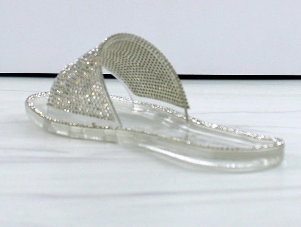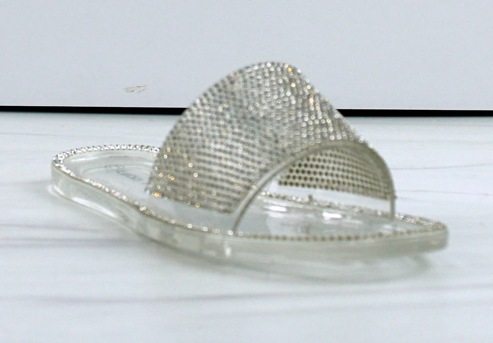 Get your little one the cutest slip on Jelly Sandal for summer. Easy slip on With Rhinestone strap