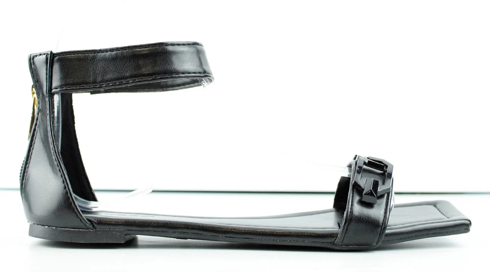 Bamboo Block 73 Womens Square Toe Chain Strap Flat Sandals