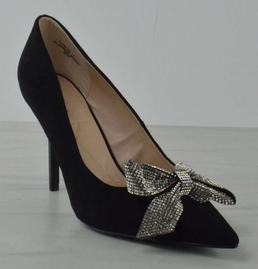 Bamboo Flora 03 Women’s Rhinestone Bow Accent Closed Toe Mid Heels