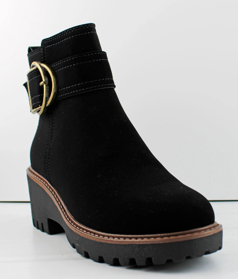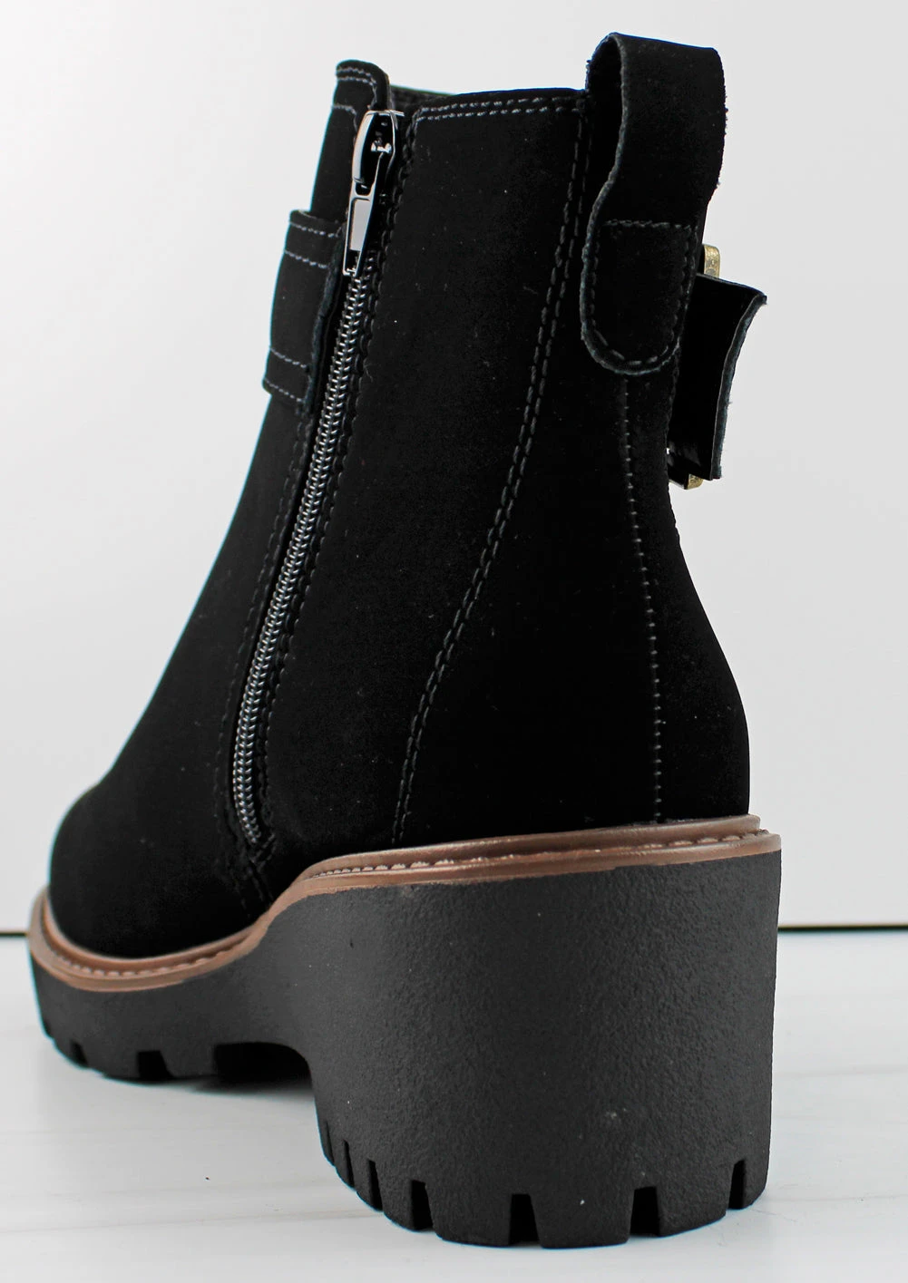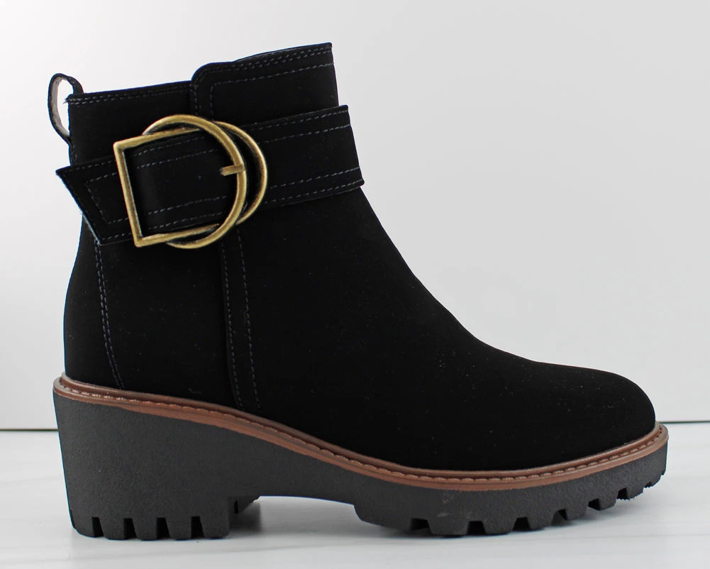 These stylish wedged ankle booties are perfect for your casual looks for the cooler weather! The buckle closure and side zipper allow them to fit more snug, making them comfortable to wear!