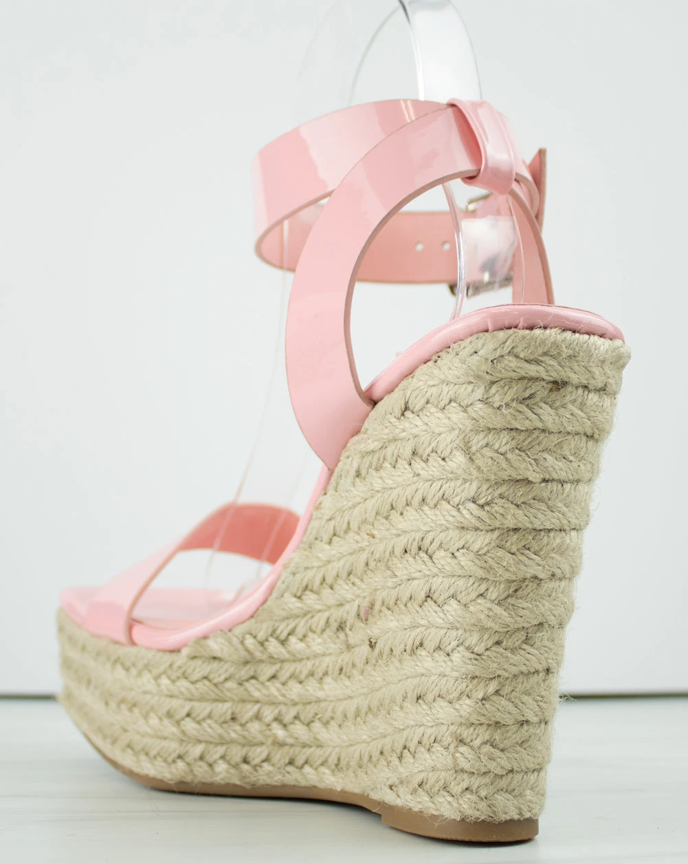 Bamboo Prefer 01 Women’s Patent Square Toe Wedge Espadrille Sandals
