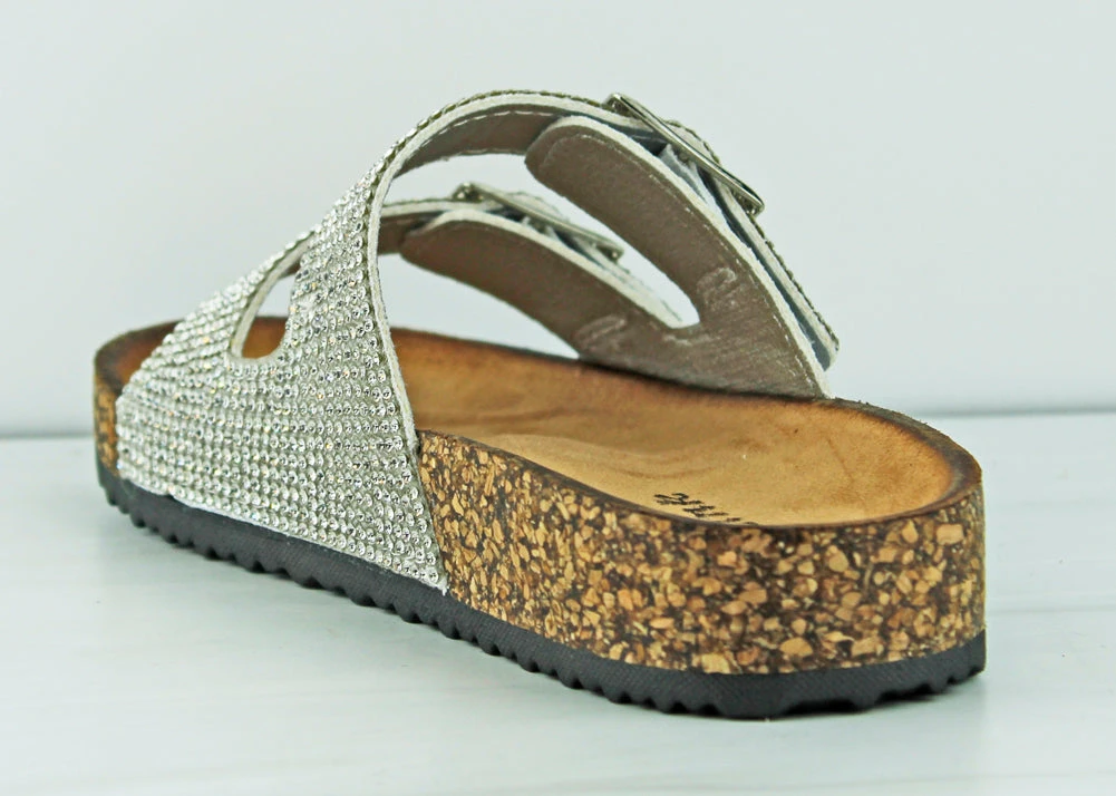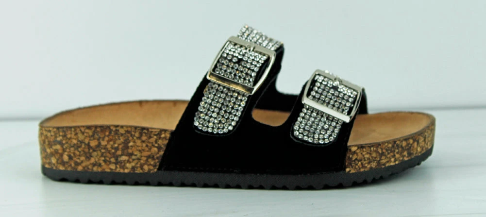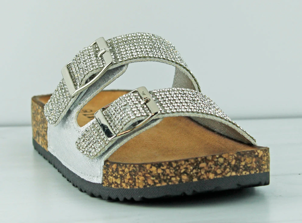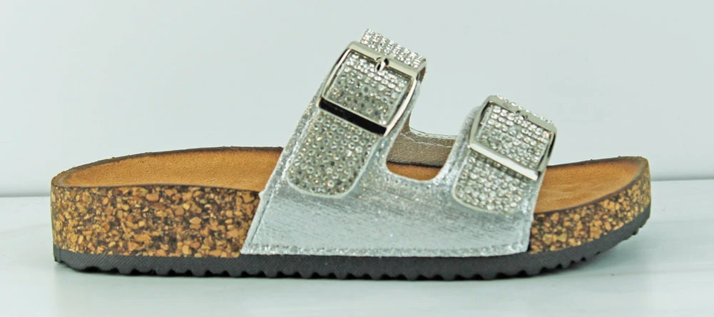 Berk 06k Little Girl’s Double Buckle Embellished Cork Sole Slip On Sandals