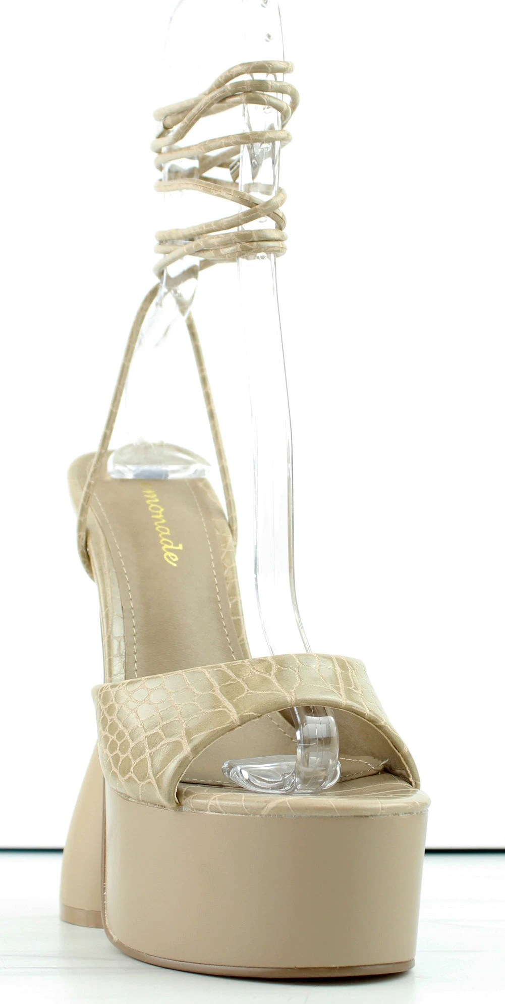 Bite Me Womens Platform Cylinder Wrap Up Sandals