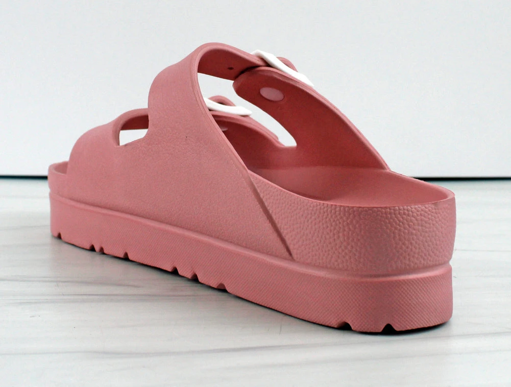 Nothing beats comfort like a an open toe slide. Features a double buckle straps and a small platform. light weight for comfort.