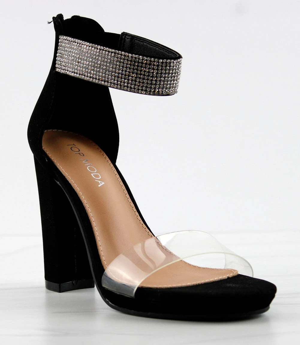 Step out in style an bling with our Choo 1 Pumps! With a lucite upper strap and rhinestone embellished ankle strap, these pumps go with just about any outfit!Â