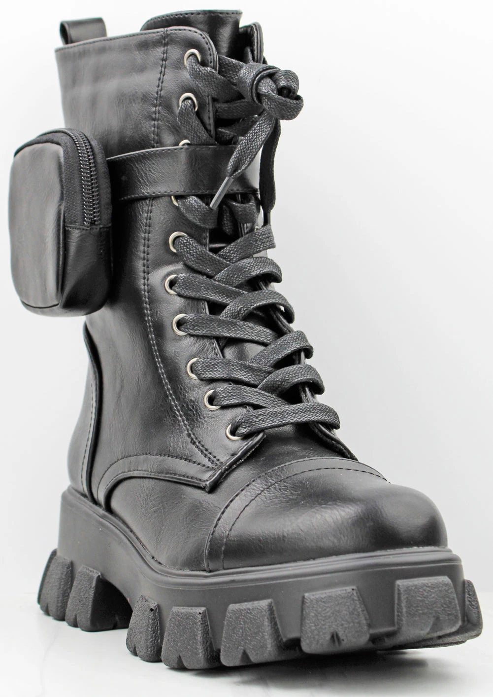 Adorable combat boots with a pocket accent are modern yet classic, featuring a 1 inch platform and lace up design these are too cute when paired with some dark or light jeans!