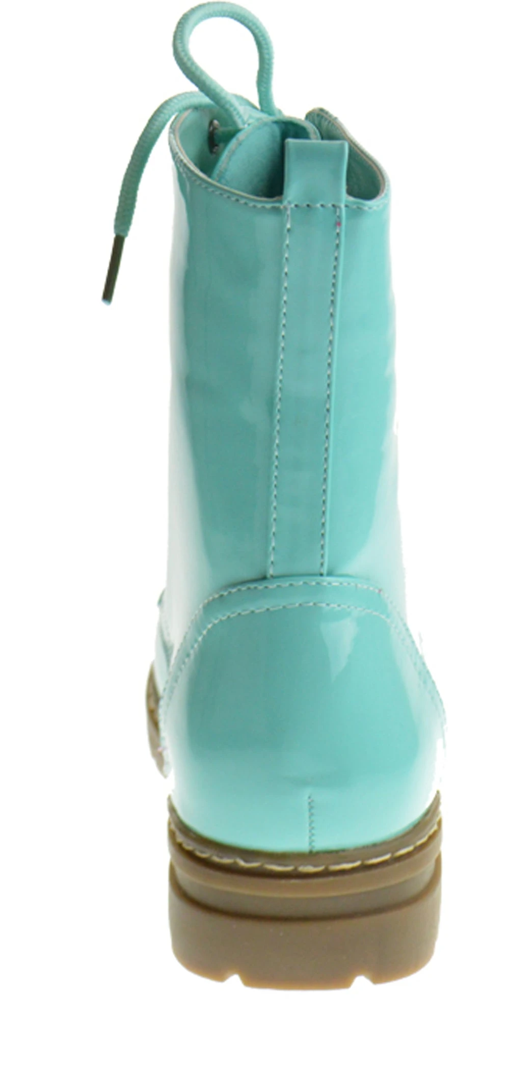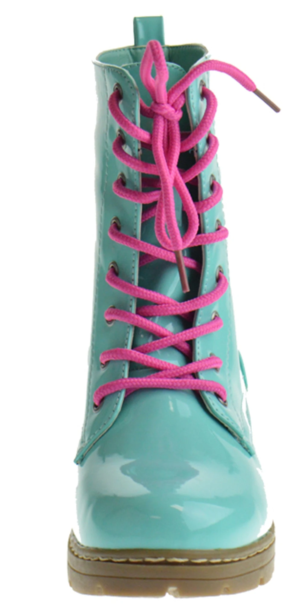 Declyn 01 Womens Patent 2 Color Lace Combat Boots Candy Red 11