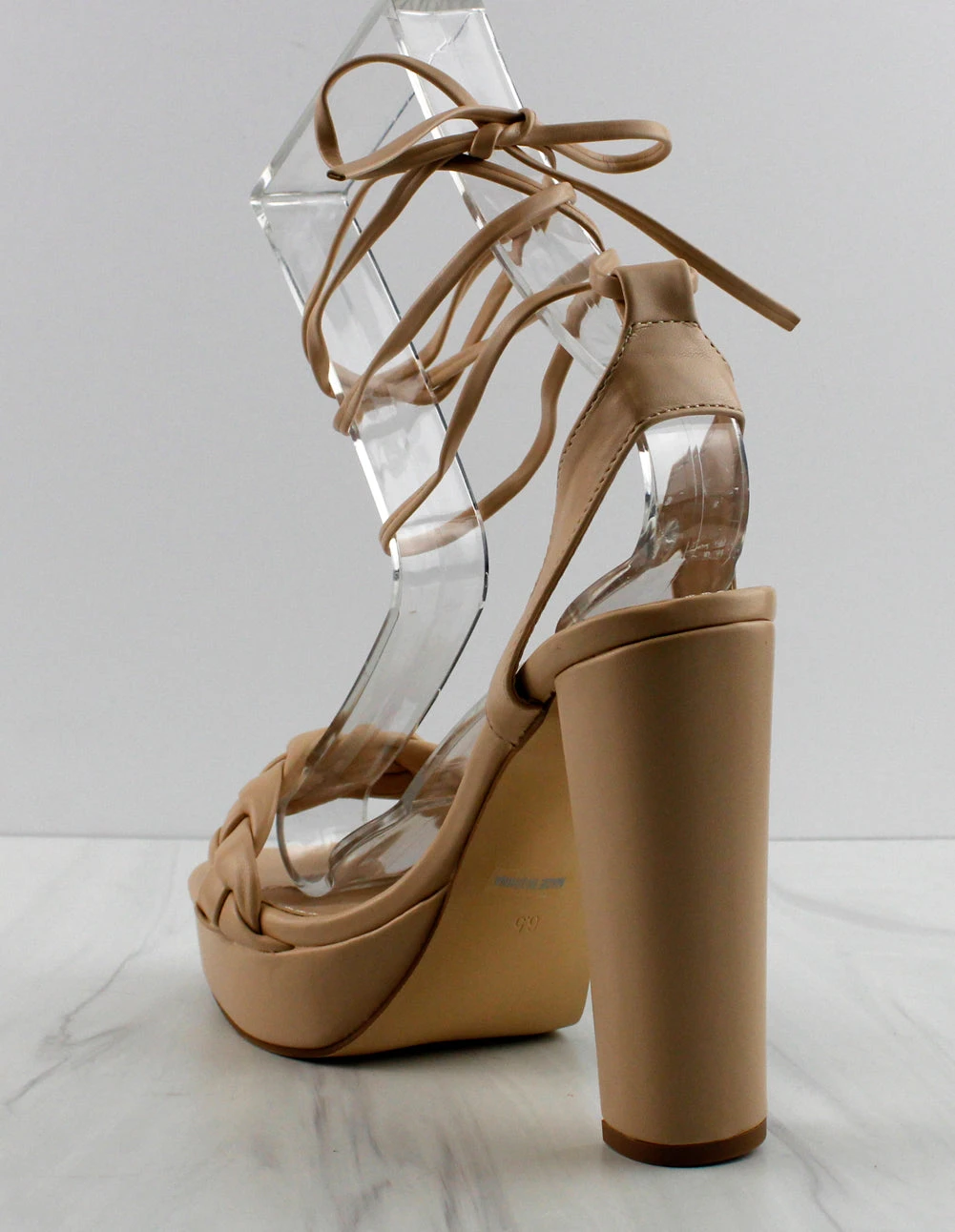 These Chunky Black Lace Up Platform Heels pair with any outfit! They feature an open toe with a braided textured strap, tall block heel, approximately 5″ with lace up straps. Perfect for a casual outing or a girl’s night out!