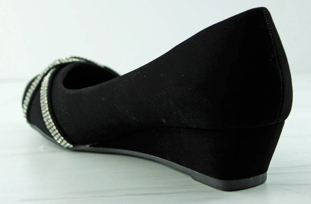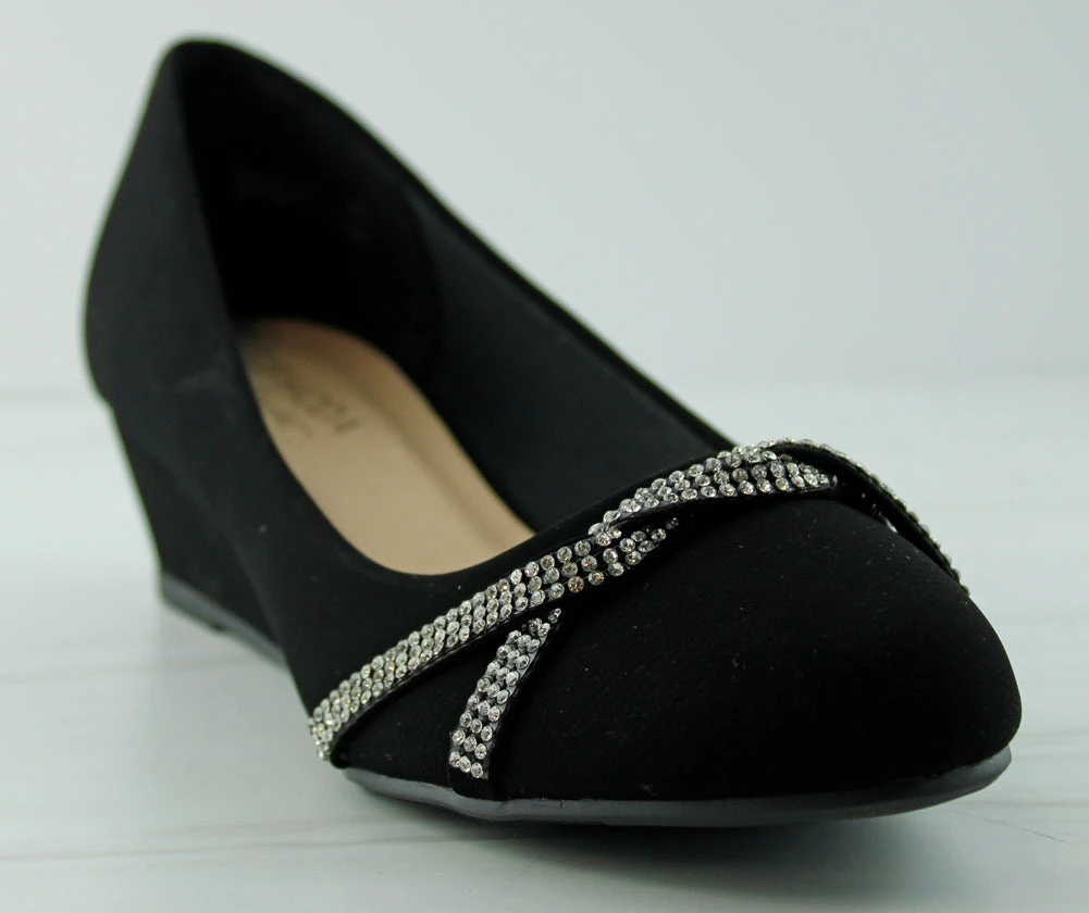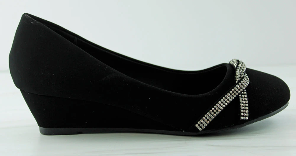 Emory 3 Women’s Rhinestone Round Toe Kitten Wedge Dress Heels