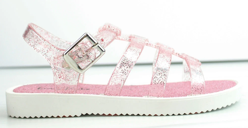 These sandals will bring style and comfort to your little girl! They feature a buckle clasp on the ankle, making them adjustable. They also have a multi strap look over the foot.