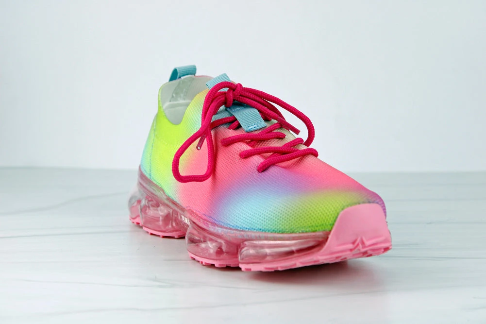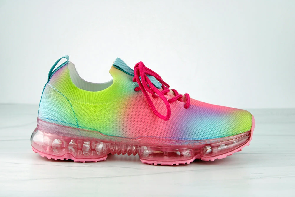 Hop on the active trend with our new Lasheelah Flow-19 sneakers! This comfortable shoe is crafted with a canvas material in a knitted design that fits the entire body of the shoe. The stretchy material fabric allows for an easy slip-on entry with decorative lace detailing on the top of the shoe. A bubble gel bottom sole gives the shoe a trendy active feel while providing comfort all in one. This shoe is man-made with all vegan materials. Take your perfect size as this shoe runs true to size.Â