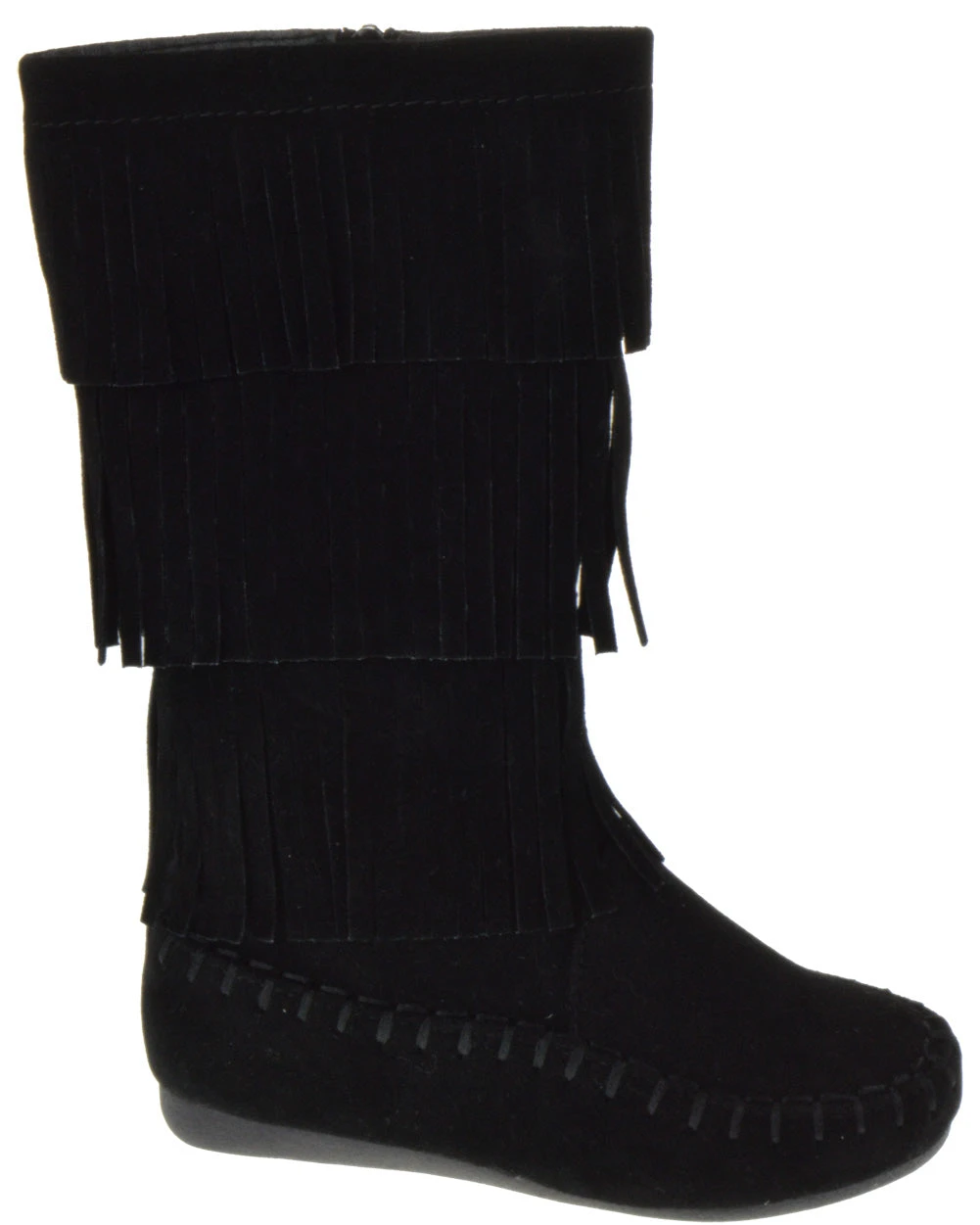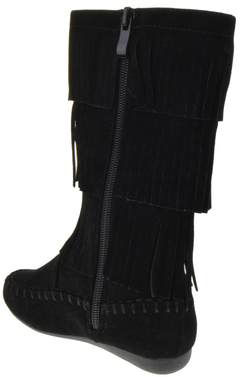 The fabulous 3-Layer Fringe boot puts even day-to-day looks in the spotlight. Wear it over leggings and denim or with skirts or shorts and show off the easy movement of this fringe-happy look. A roomy moc toe and slim heel keep the fit nice and simple.