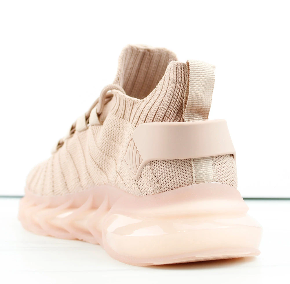 This comfortable shoe is crafted with a canvas material, the stretchy material fabric allows for an easy slip-on entry with tie up laces. A gel bottom sole gives the shoe a trendy active feel while providing comfort all in one.Â