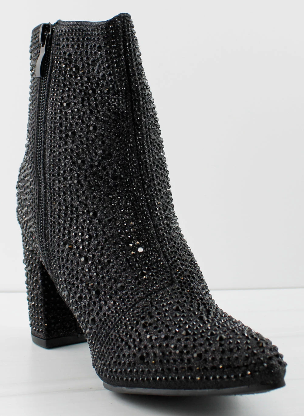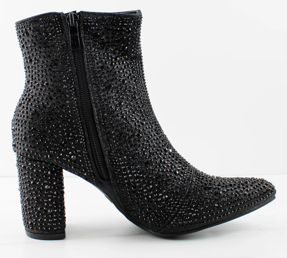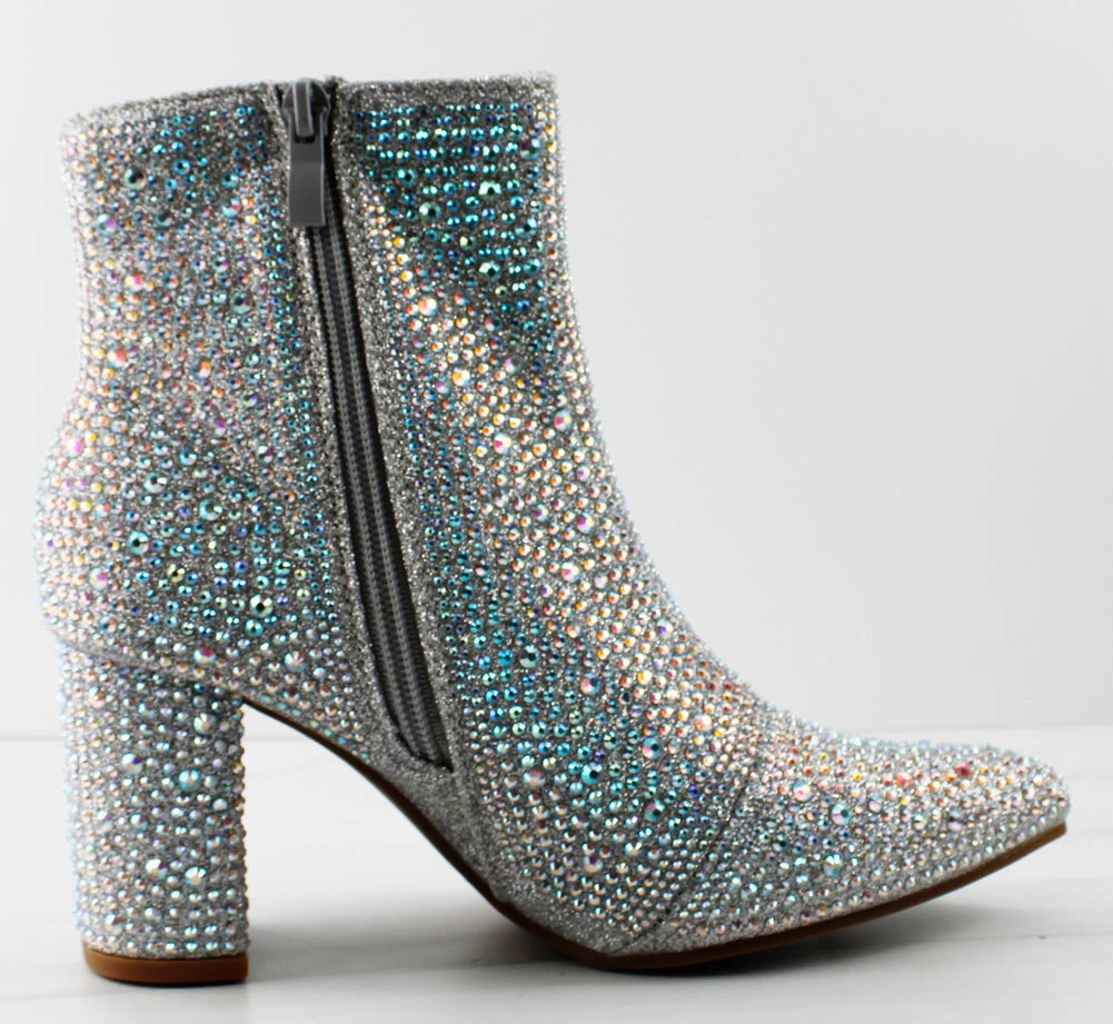 Your new statement boot has arrived. Glitz and glam has never looked better than on these disco-ready booties. A pointed toe and sturdy block heel bring this silhouette together, Consider this pair the next-level outfit-completer your wardrobe needs. They’ll turn your basic blue jeans and tee into a Rockstar-approved ensemble.