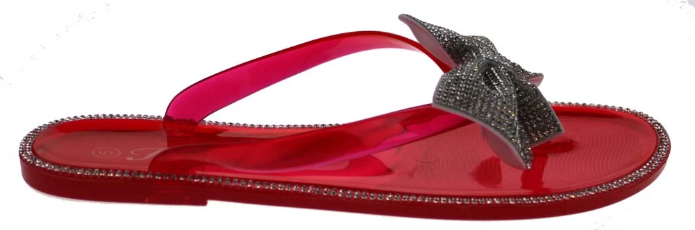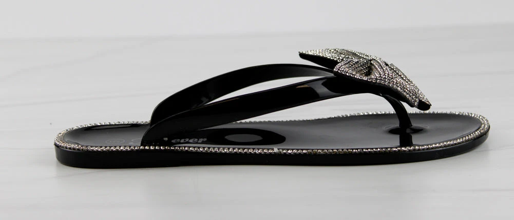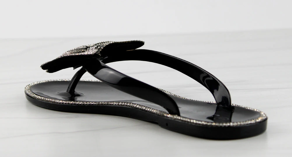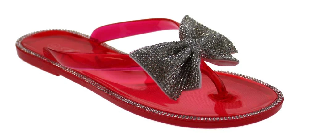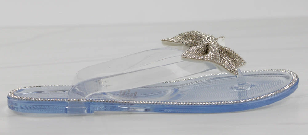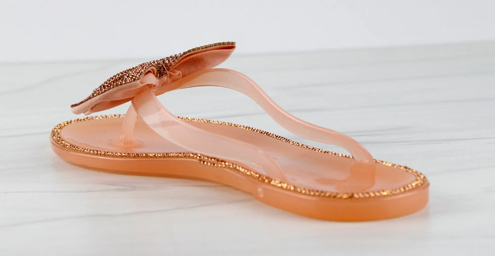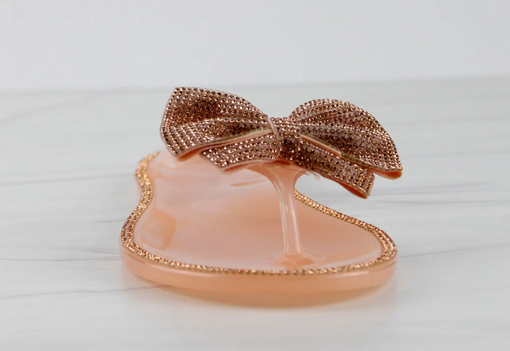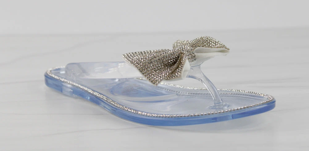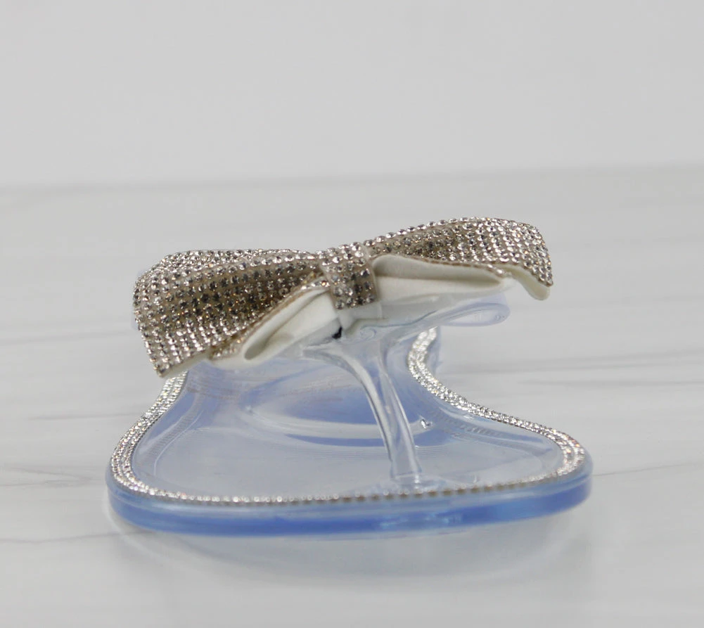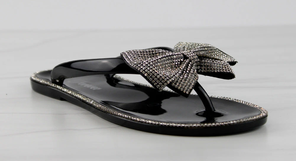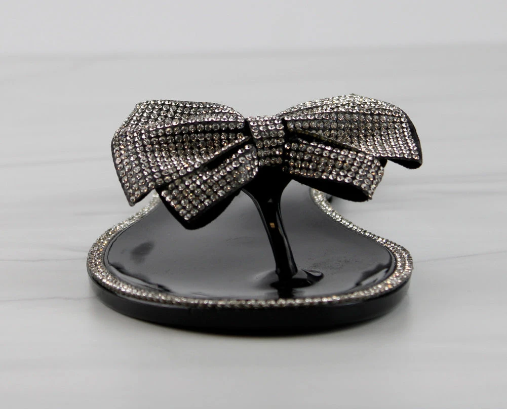 Rock low-key glam in this rhinestone-drenched sandal topped with a sprightly bow.
