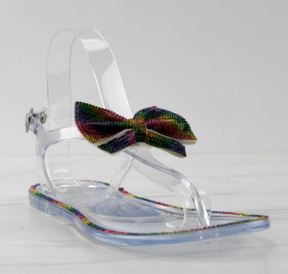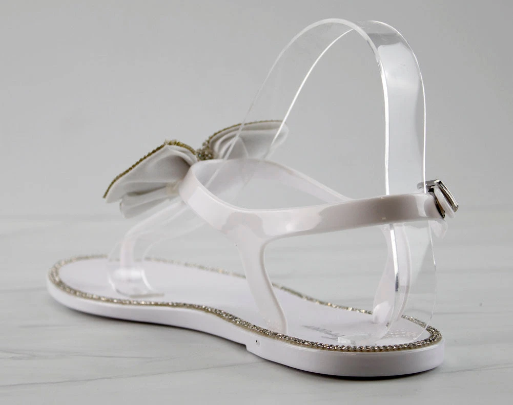 Rock low-key glam in this rhinestone-drenched sandal topped with a sprightly bow and sling back design!