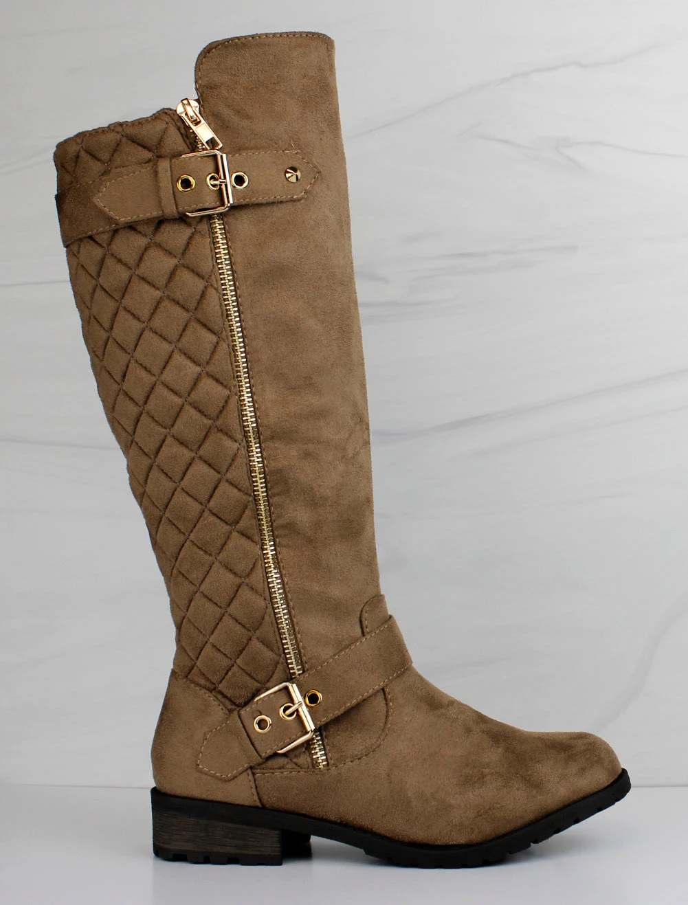 This perfect riding boot with on-trend quilted detail pairs effortlessly with your casual, everyday outfits, making it a MUST HAVE for your wardrobe!