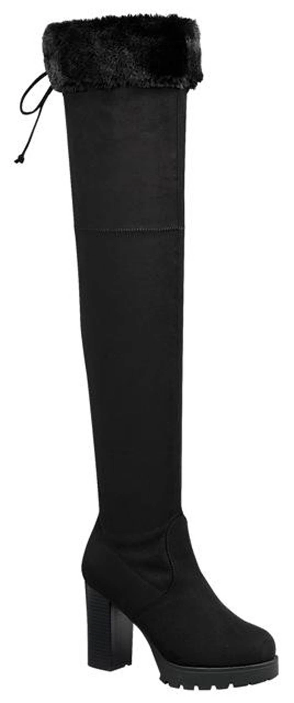 This Over the Knee high boot will have you turning heads. Features a fierce ridgeway sole, 3.5 inch heel, and super soft faux fur accent at the top of the boot.