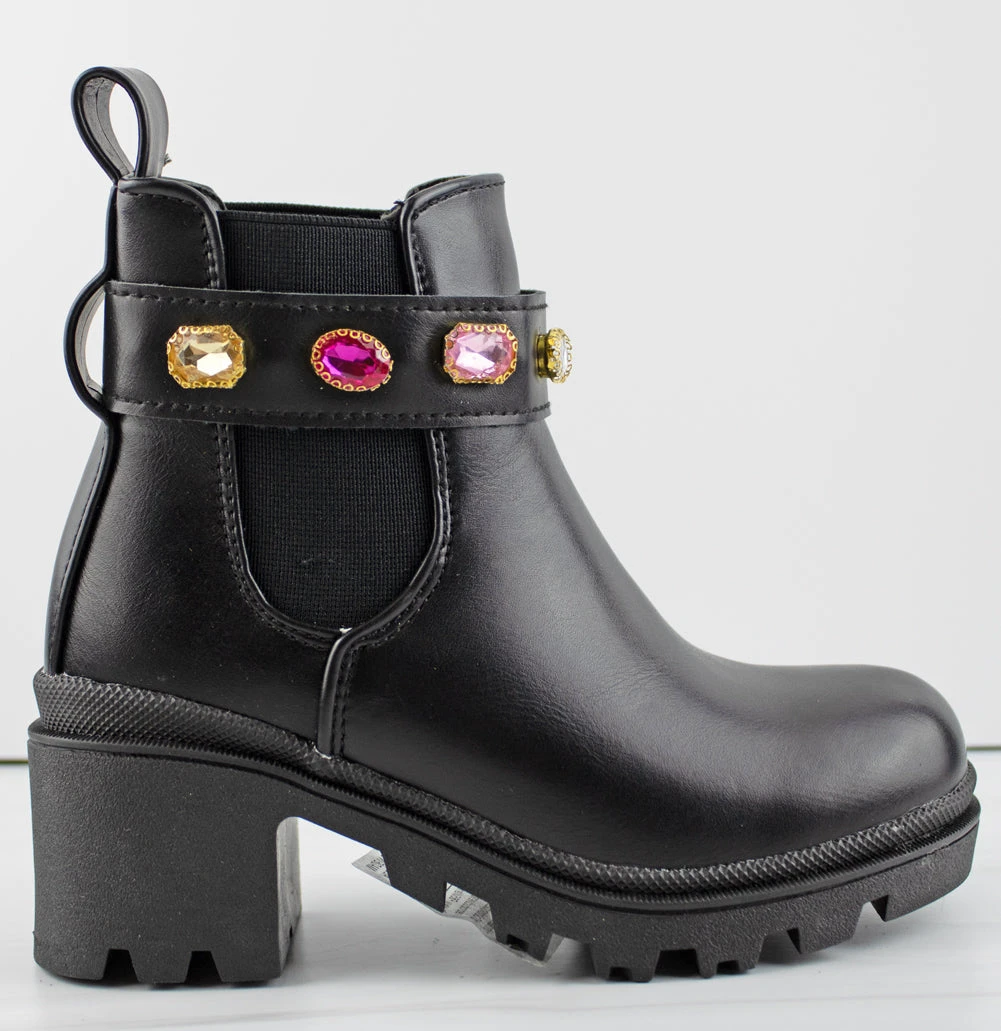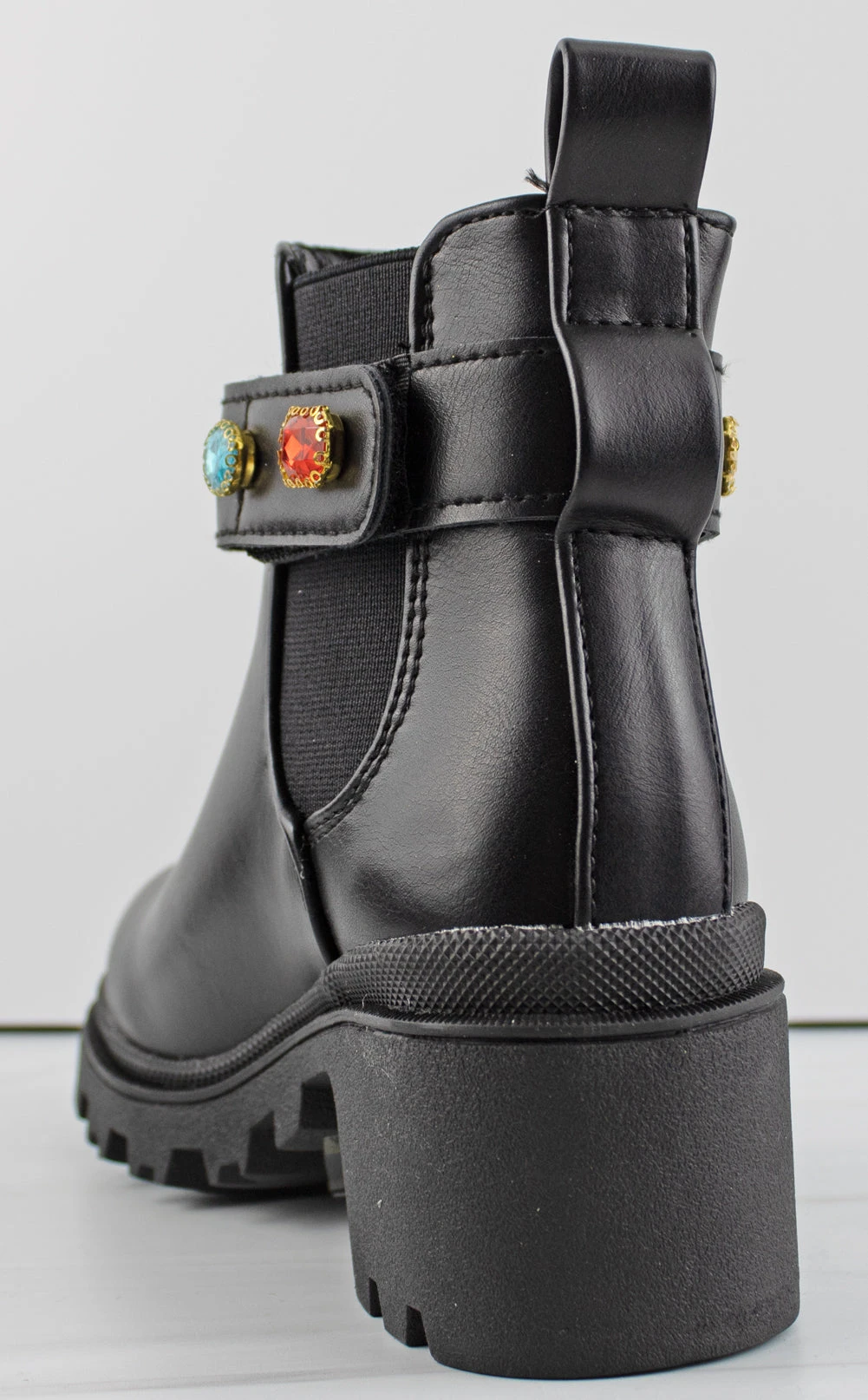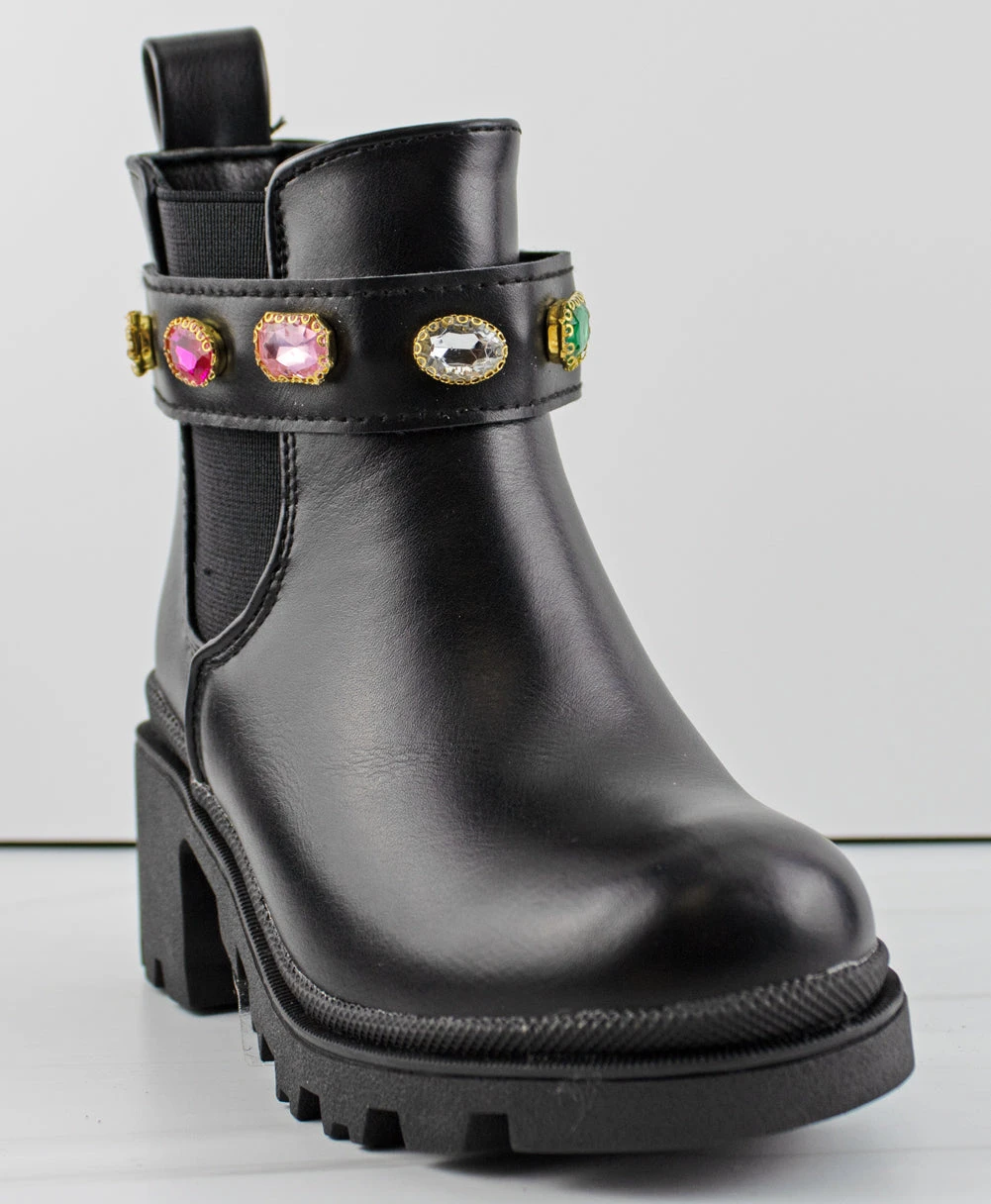 The stretchy side gores allows these booties easy to wear and comfortable! They also have a chic around the ankle rhinestone Velcro clasp!