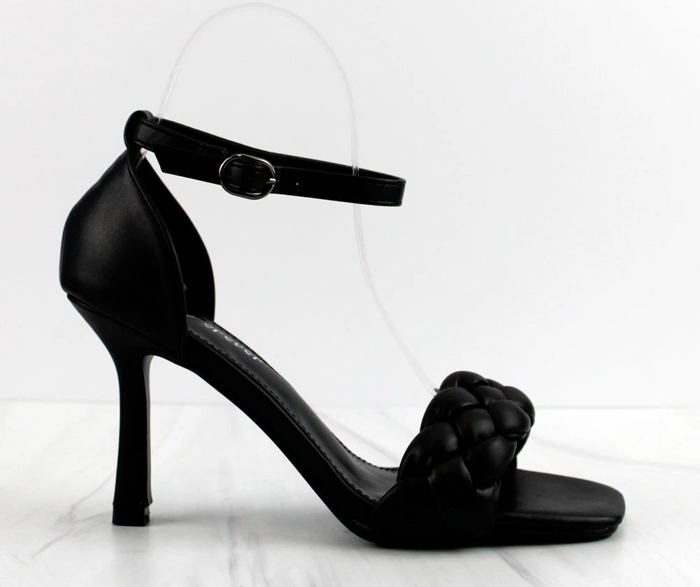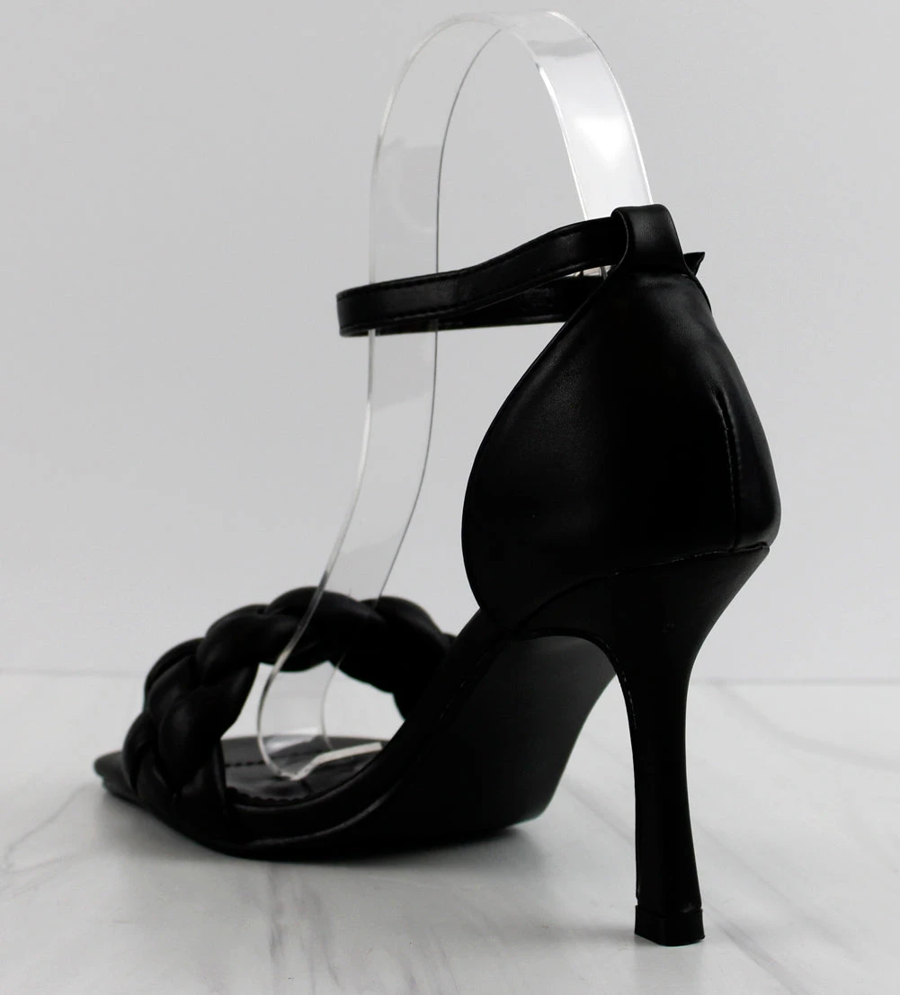 A stylish sandal with a sharp heel and braided strap, add to any outfit to level up your look.