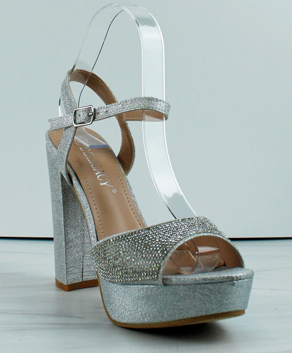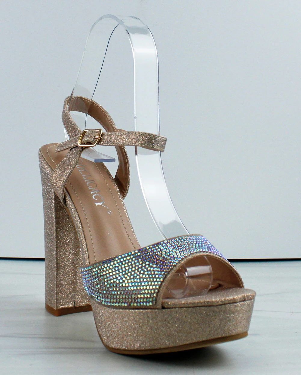Forever Yula-30 Womens Platform Block Heel Rhinestone Sandals