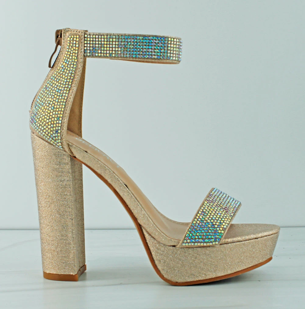 Forever Yula 33 Women’s Platform Chunky Heel Rhinestone