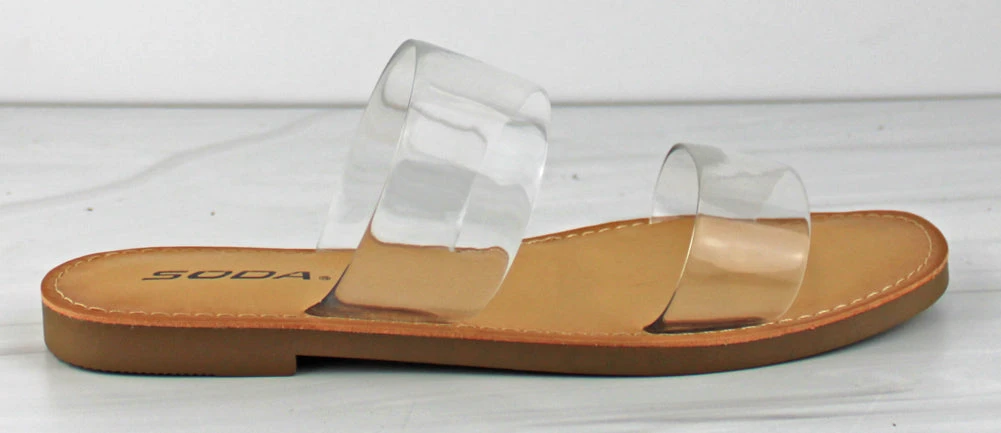 Clear is in this season! The “Gallery” are the perfect sandal to slip on with any outfit! The double band secures your foot in and makes them trendy.Â