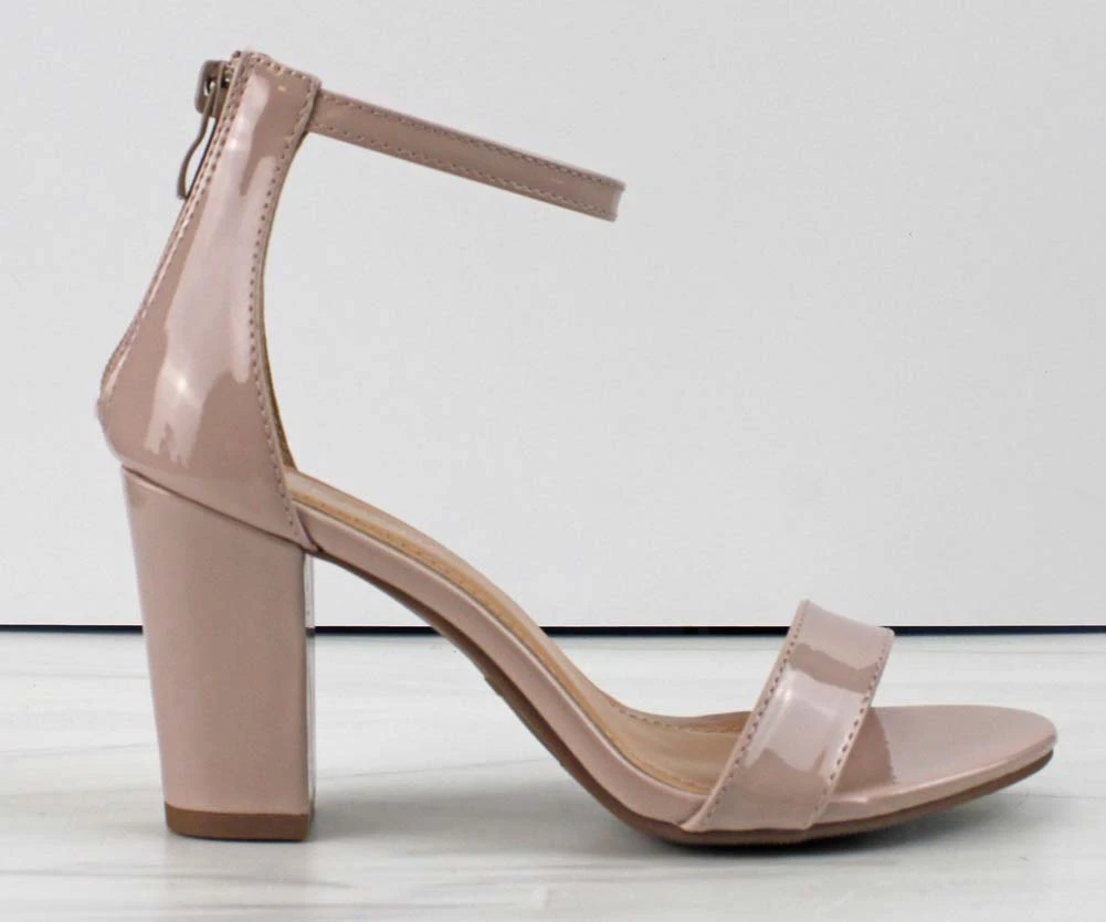 Hannah-1 Women’s Ankle Chunky Heeled Sandals Nude/Pat 7.5