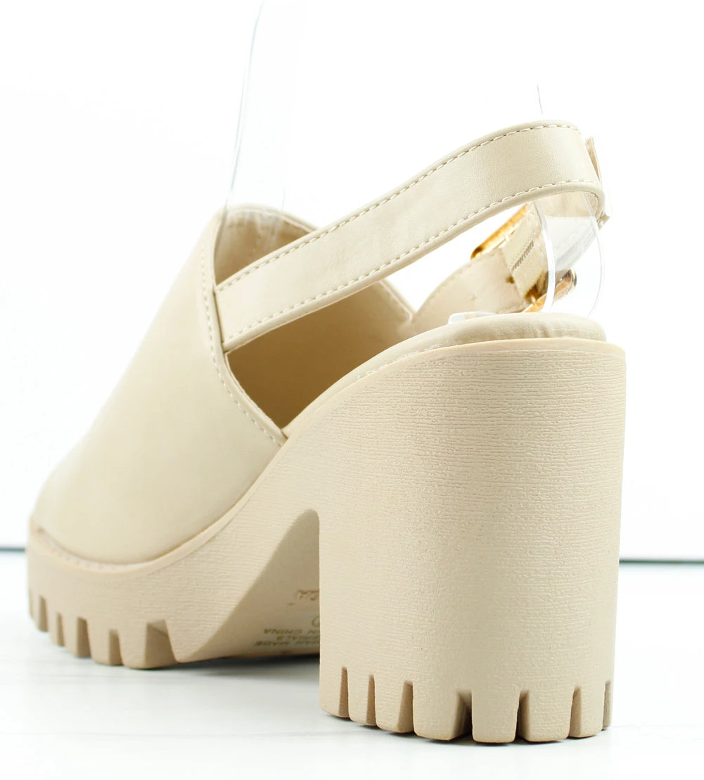 This fun peep toe chunky platform sandal will spruce up any look. The adjustable strap also adds an extra layer of comfortÂ
