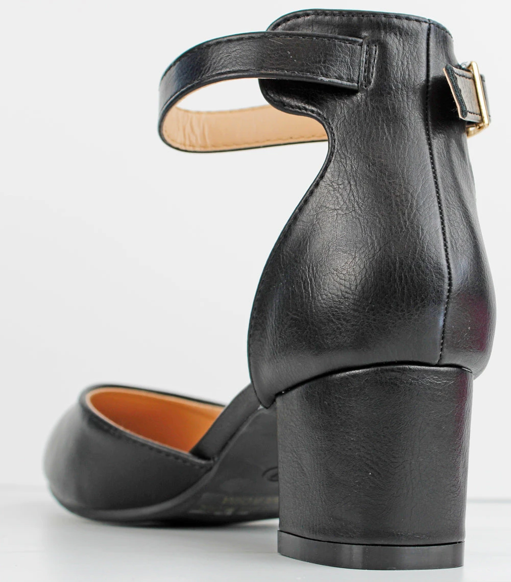 This mid heel is perfect for any occasion! The comfortable adjustable buckle clasp adds a classic look to this simplistic heel.