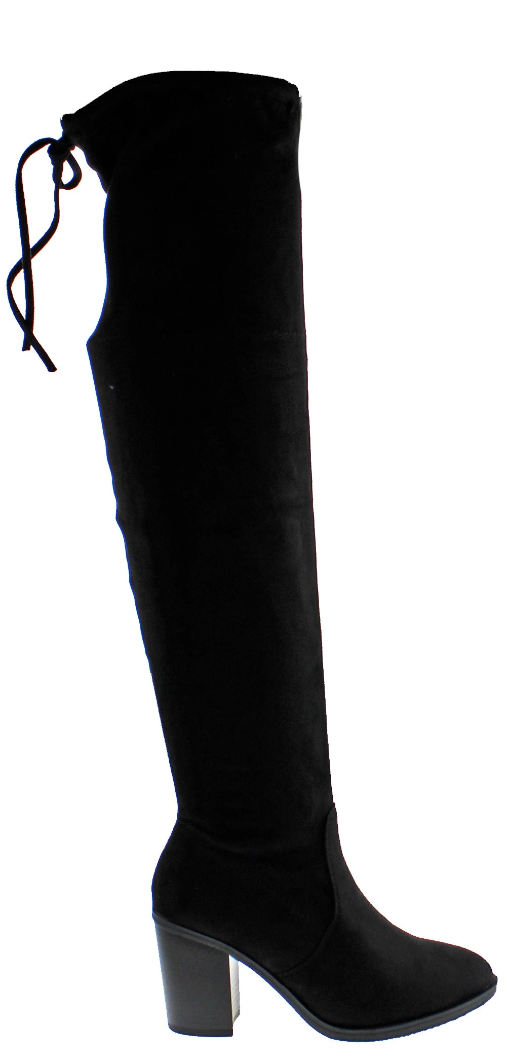 Style your outfit with these over-the-knee boots.This thigh-high boot features a tie closure at the top line for a flawless fit and a block heel provides a much-needed lift.