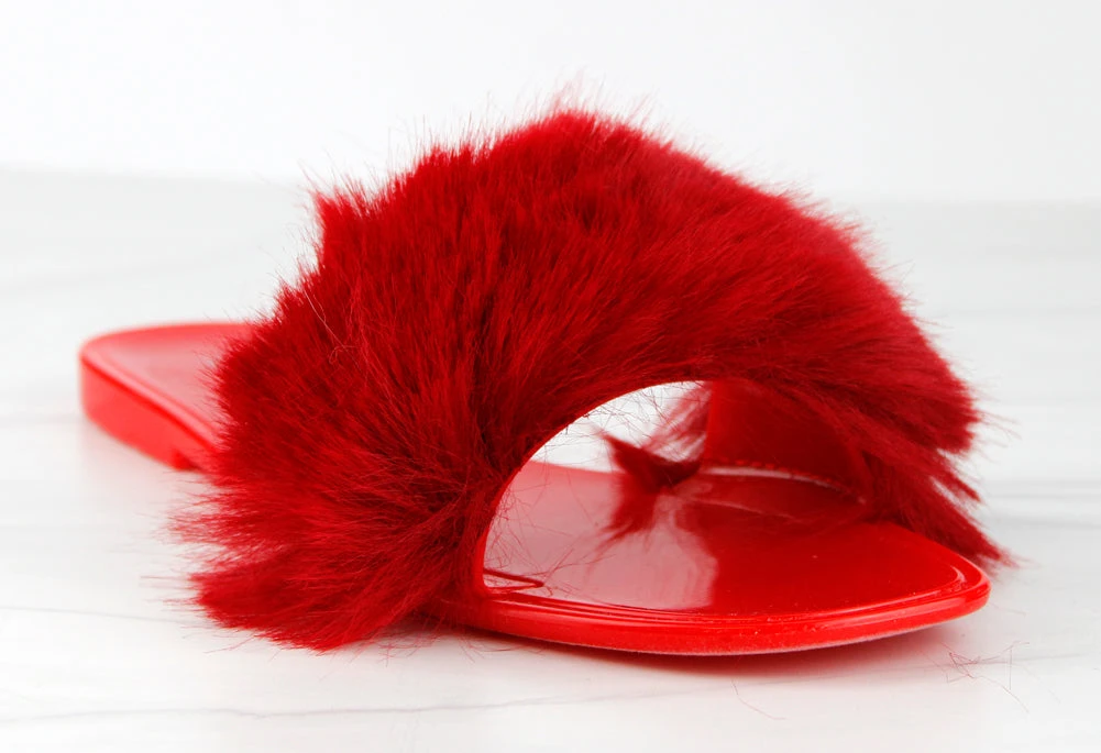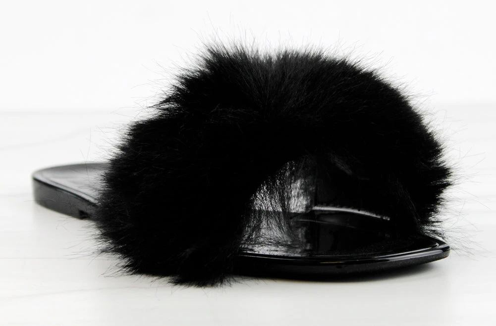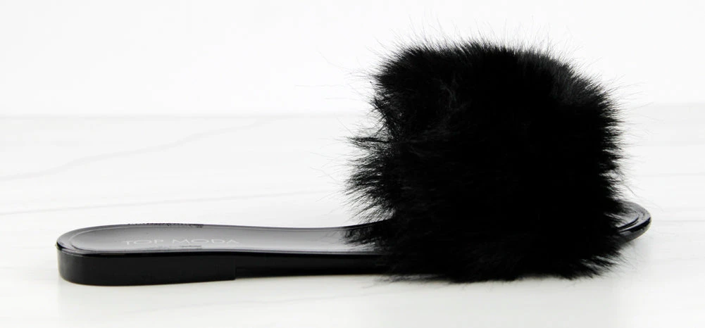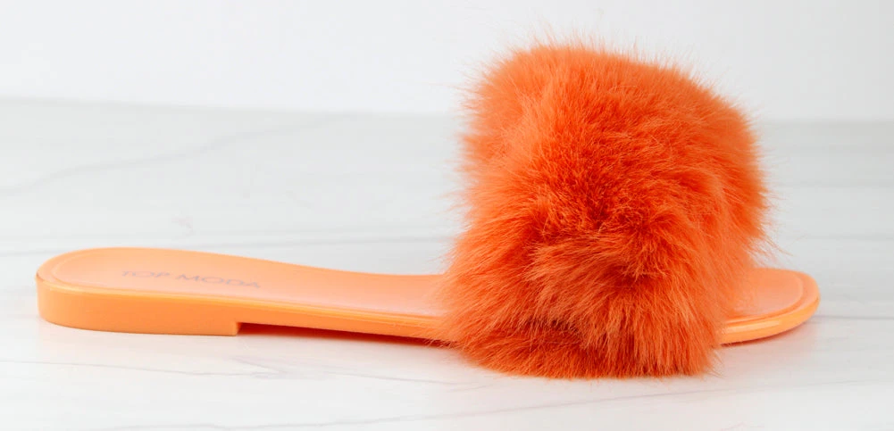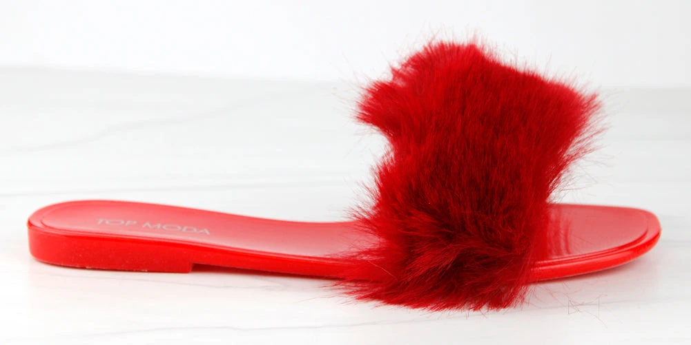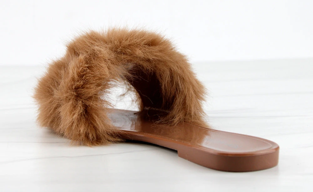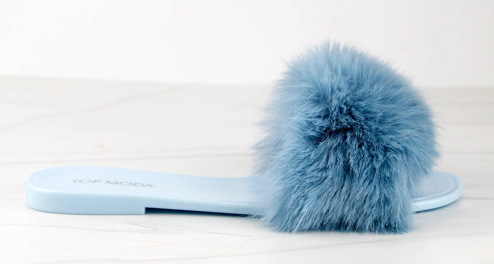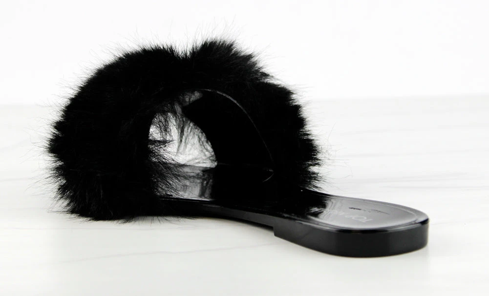 Stay stylish and comfy in these slip on sandals featuring a fluffy fur upper band and easy slide on construction.