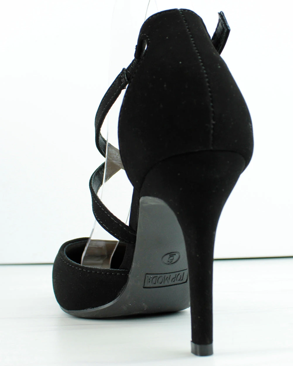 These closed toe heels are perfect for an evening out. They have an adjustable buckle clasp around the ankle that gives a criss cross at the front of the shoe.Â