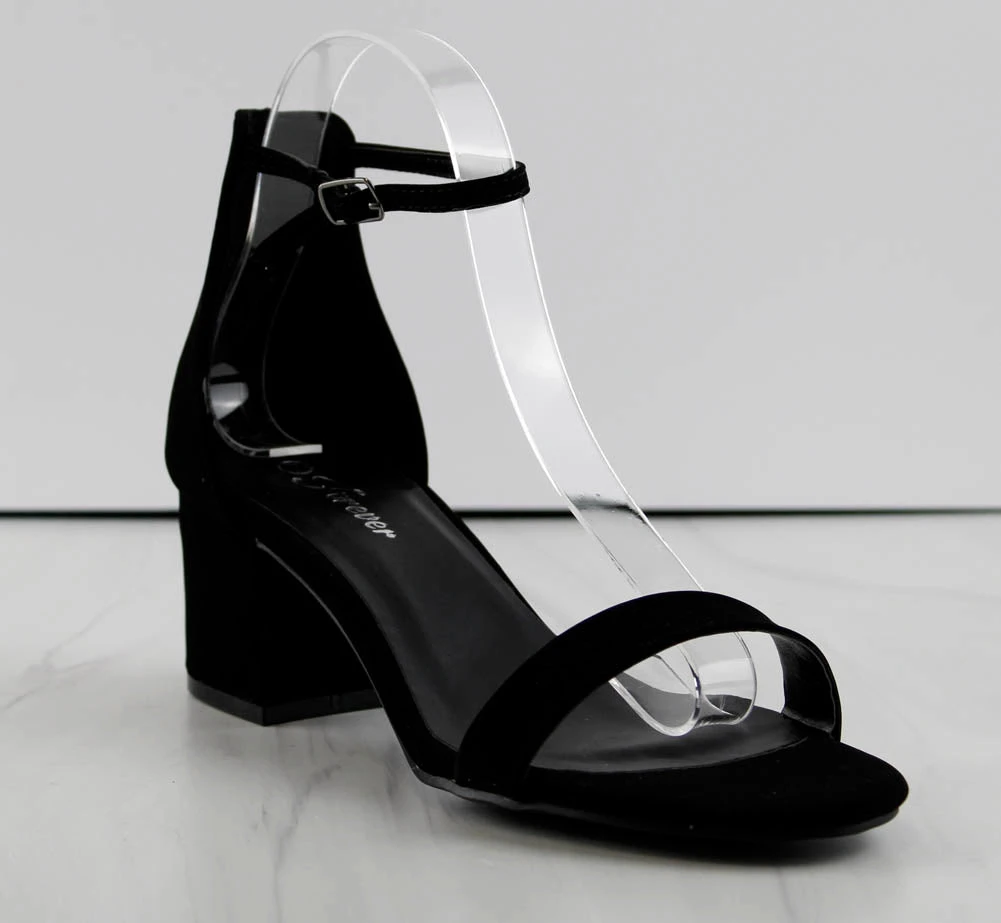 Stay comfortable and still sexy with our low heeled open toe heel.