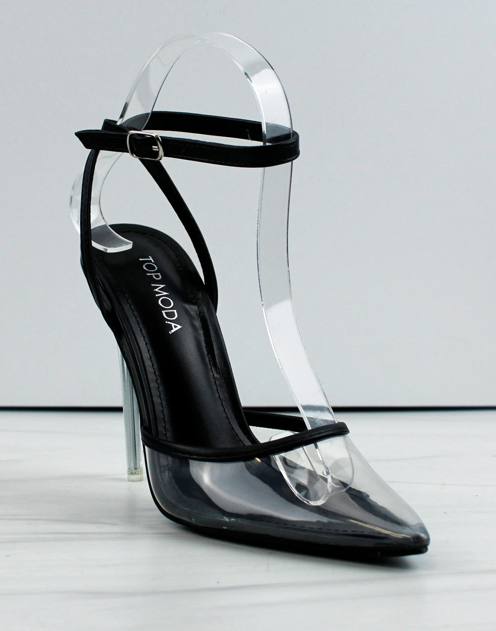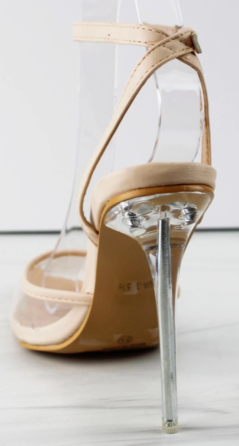 Step into the night with this translucent pump featuring a sexy thin Ankle strap and a five inch stiletto heel