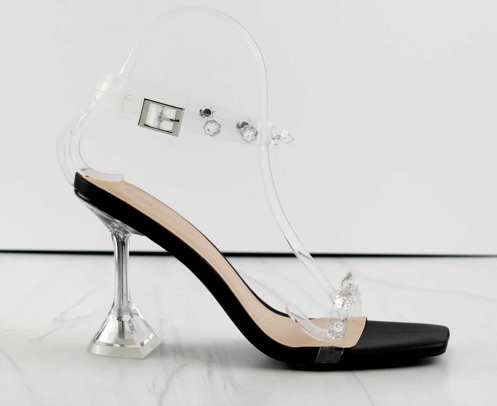 Pleasure 03 Womens Gem Embellished Lucite Strap Pyramid Heels