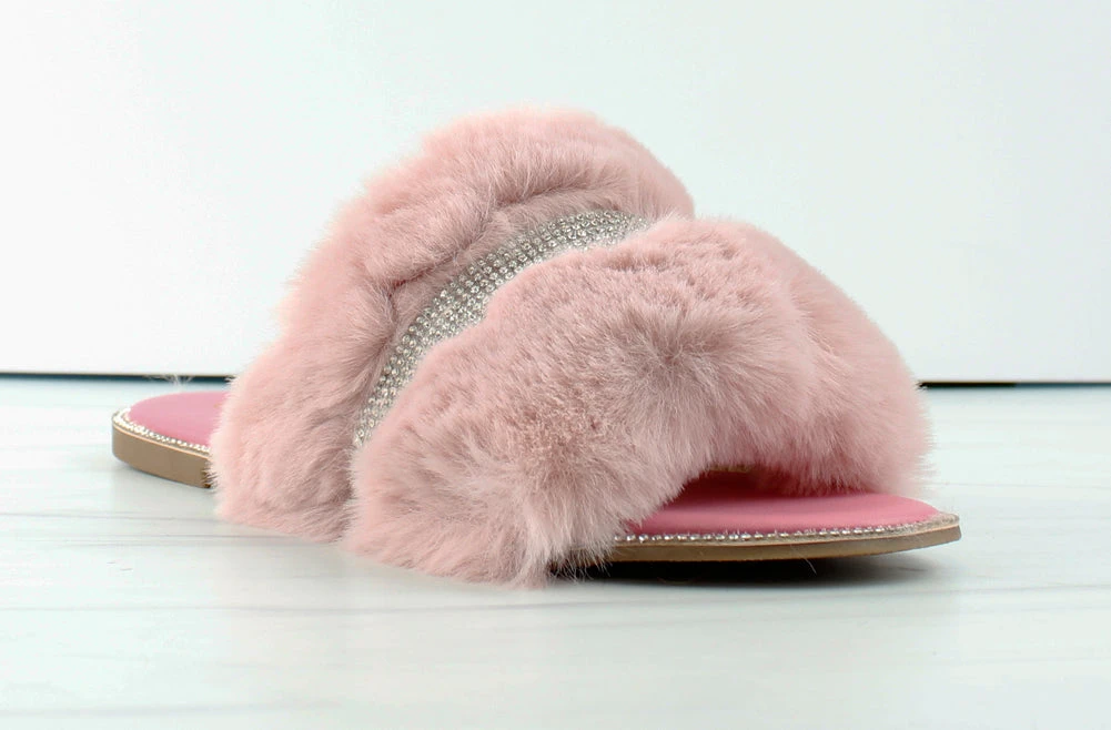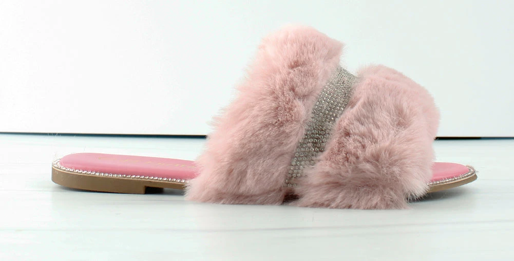 Sarah 008 Womens Flat Slip On Faux Fur Sandals