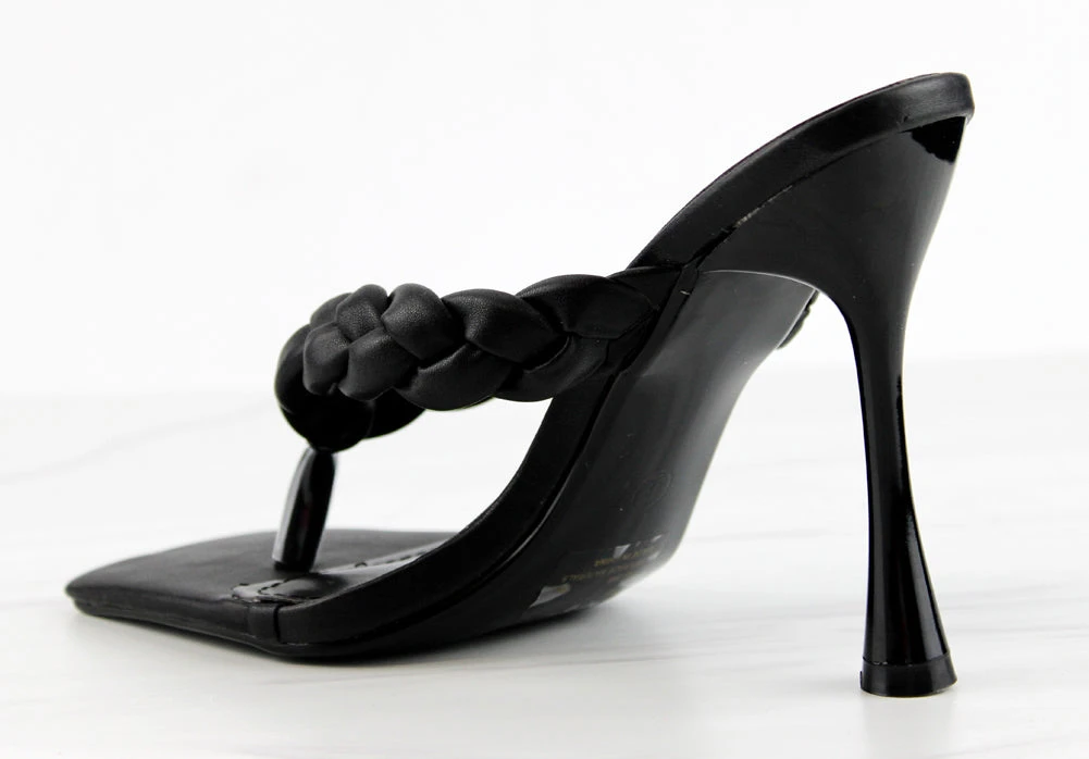 Dress up any outfit with these adorable heels! With a braided/thong strap design, square toe, and pyramid heel they’re easy to slip right on and you’re ready to head out the door!